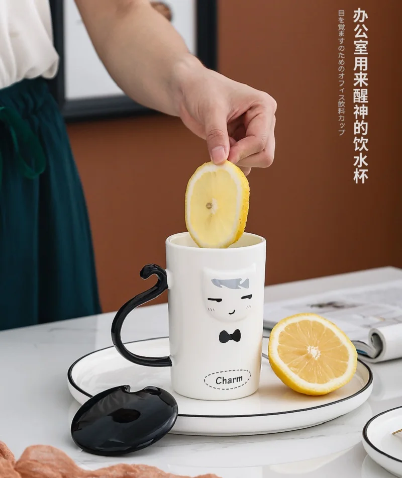 BEST QUALITY Cute Embossed Cat Couple Ceramic Mug Black and White Cat Kiss Mug Wedding Housewarming Gift With Sp